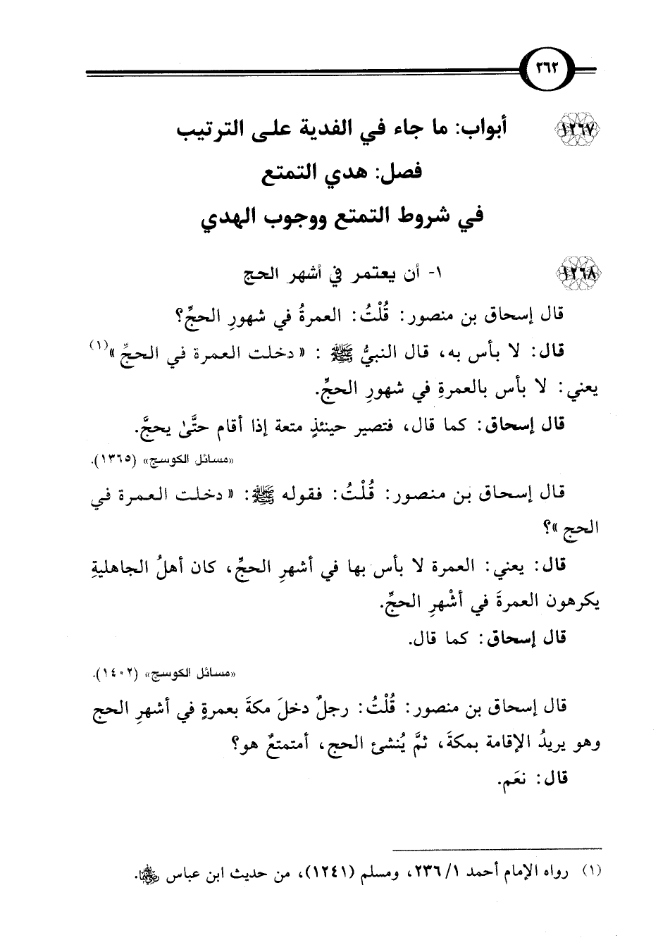 قال إسحاق بن منصور: قُلْتُ: العمرةُ في شهورِ الحجِّ؟