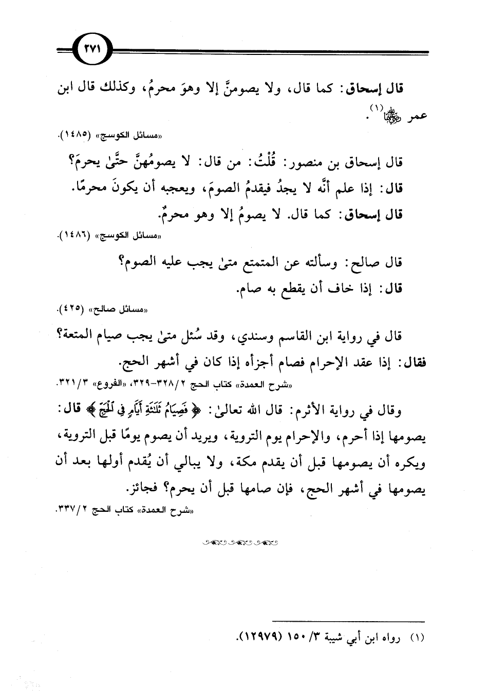 "شرح العمدة" كتاب الحج 2/ 328 - 329، "الفروع" 3/ 321.
