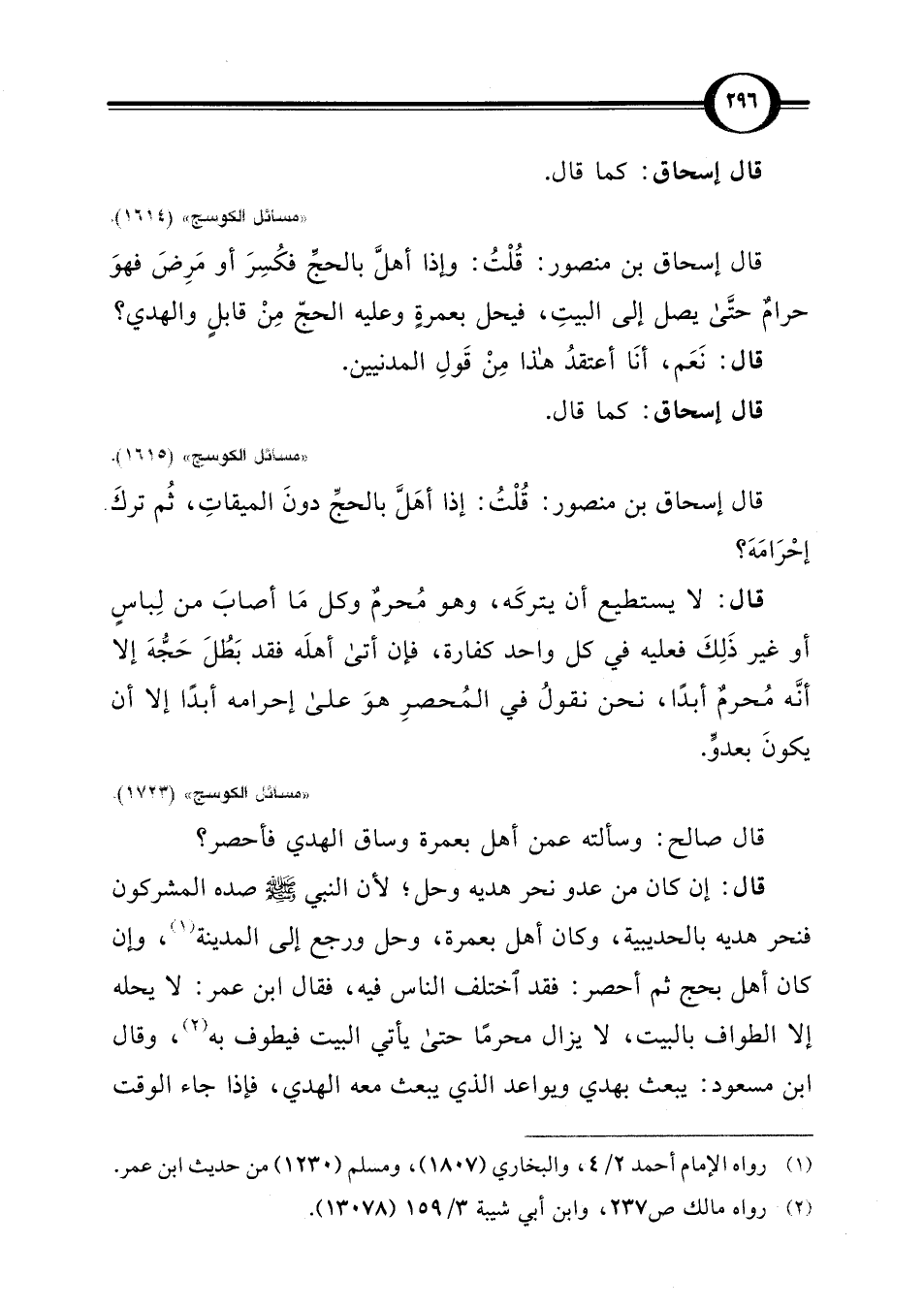 "مسائل الكوسج" (1723).