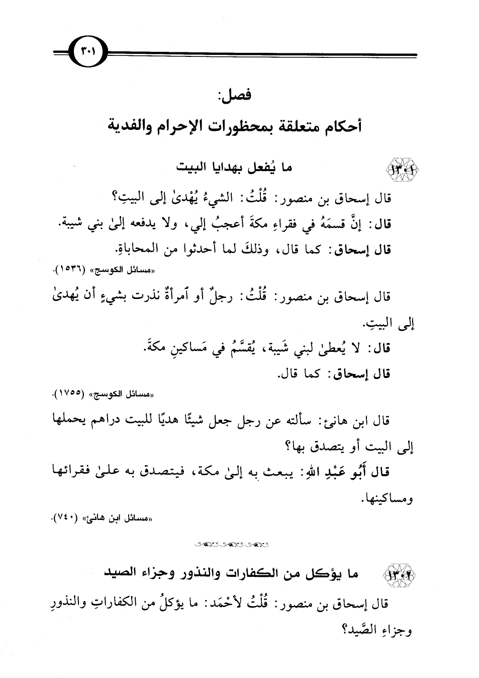 قال إسحاق بن منصور: قُلْتُ: رجل أو امرأ نذرت بشيءٍ أن يُهدى إلى البيتِ.
