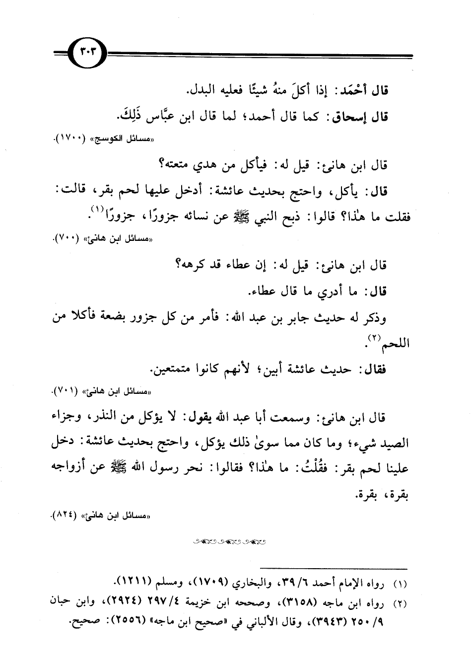 "مسائل ابن هانئ" (701).