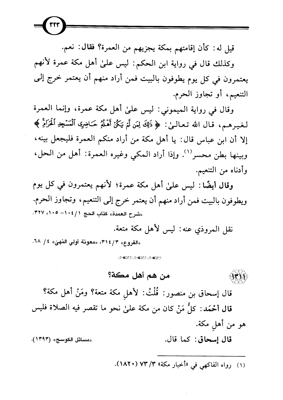 قال إسحاق بن منصور: قُلْتُ: لأهلِ مكة متعة؟ ومَنْ أهل مكة؟