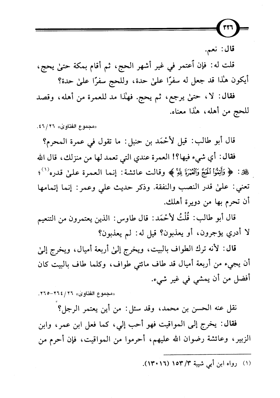 قال أبو طالب: قيل لأحْمَد بن حنبل: ما تقول في عمرة المحرم؟