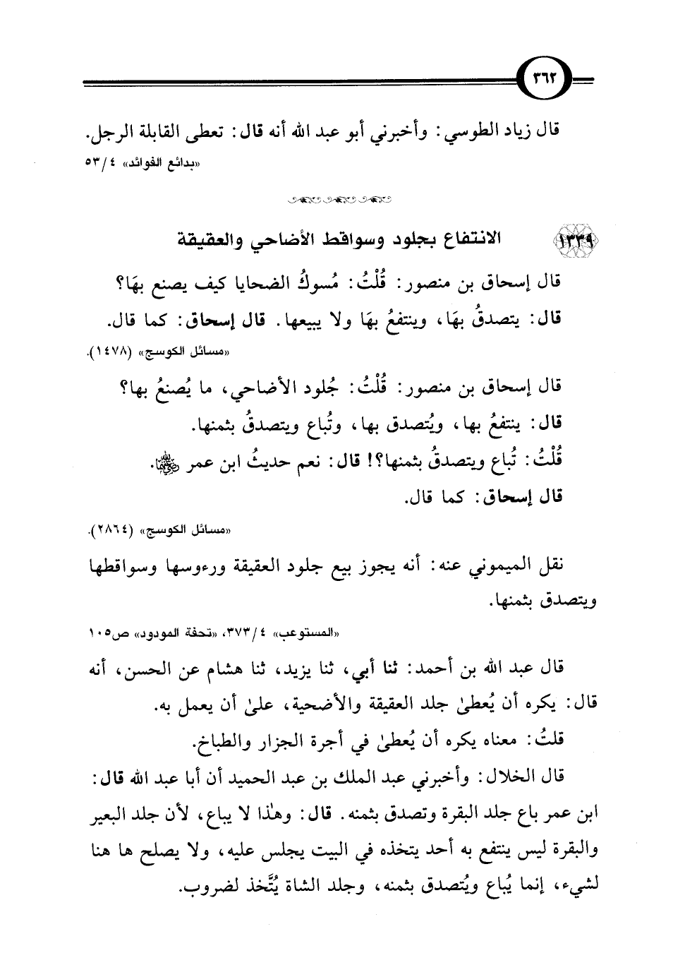 1339 - الانتفاع بجلود وسواقط الأضاحي والعقيقة