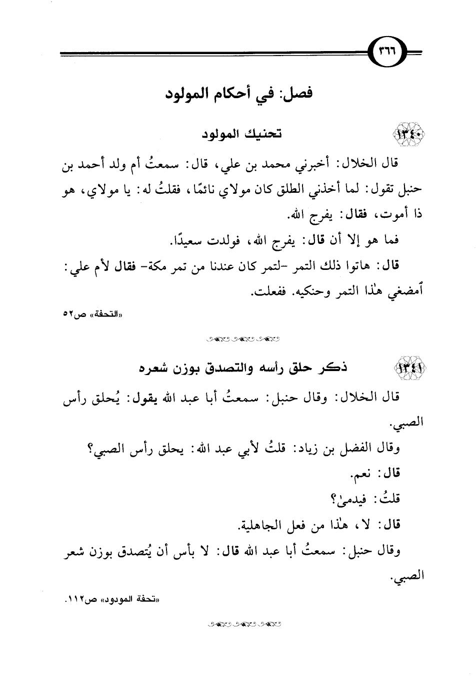 وقال الفضل بن زياد: قلتُ لأبي عبد اللَّه: يحلق رأس الصبي؟
