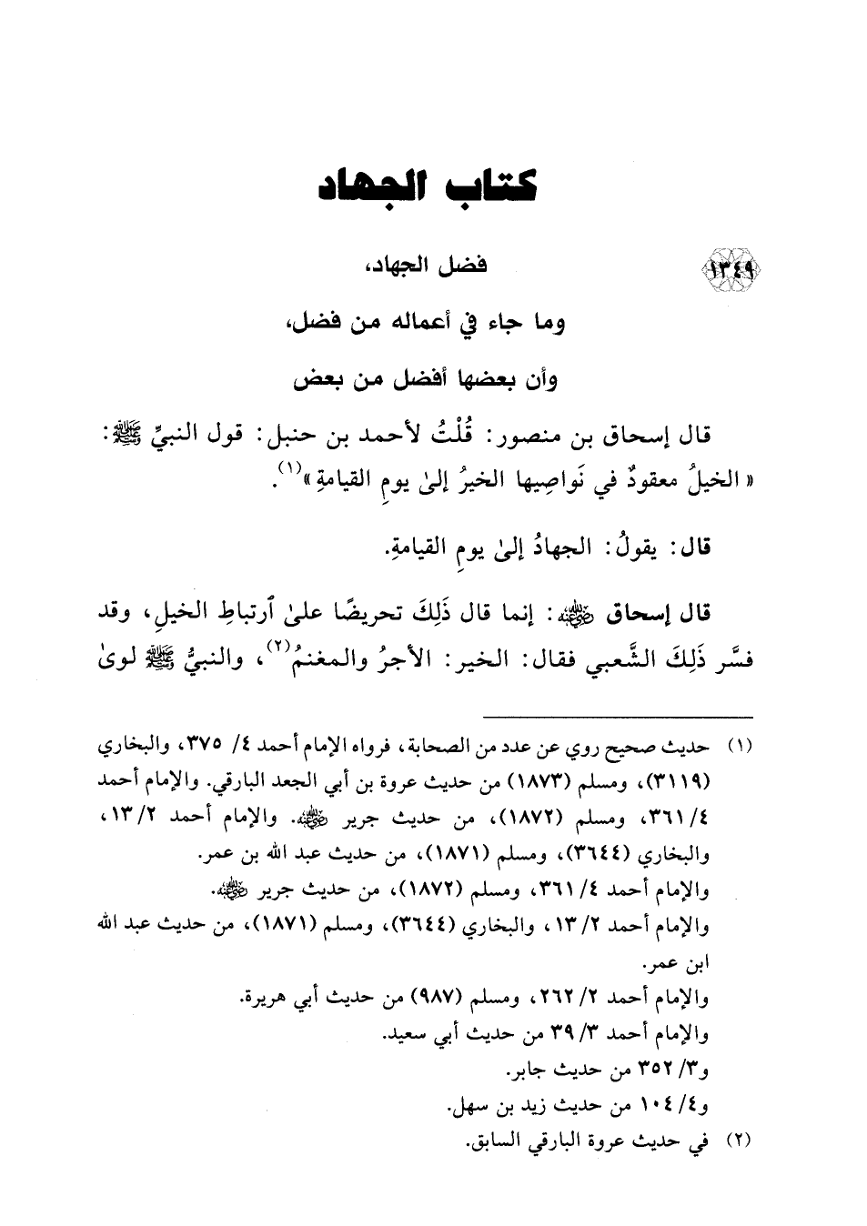 1349 - فضل الجهاد، وما جاء في أعماله من فضل، وأن بعضها أفضل من بعض
