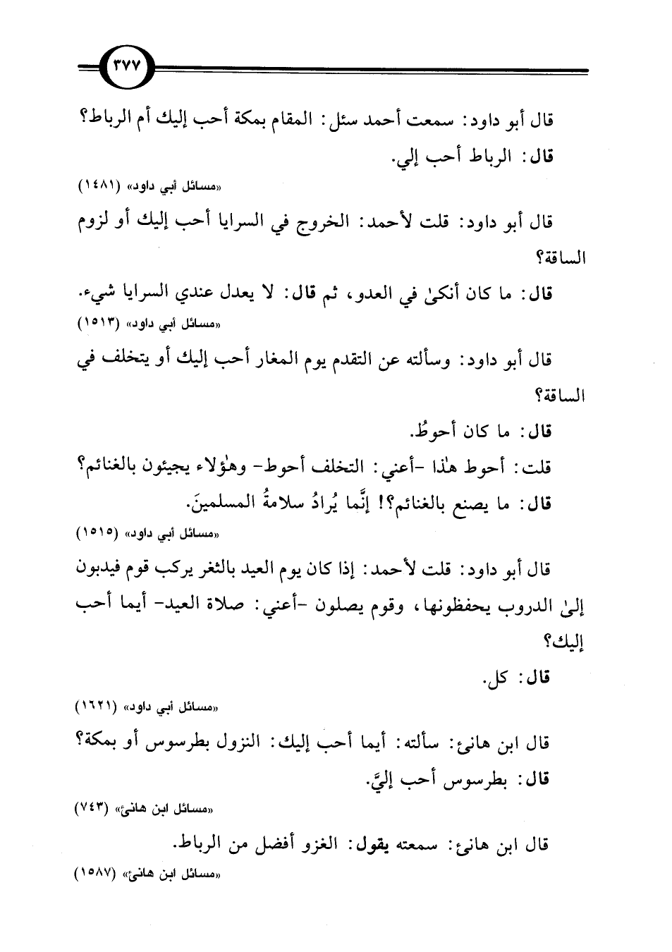 قال ابن هانئ: سمعته يقول: الغزو أفضل من الرباط.