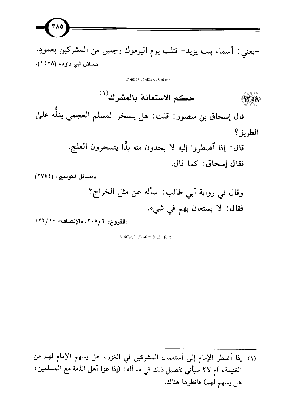 1358 - حكم الاستعانة بالمشرك (¬1)