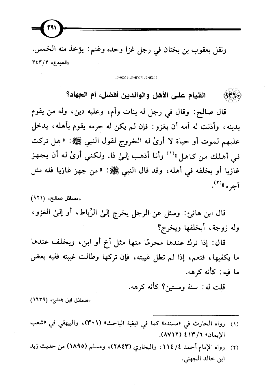 1360 - القيام على الأهل والوالدين أفضل، أم الجهاد؟