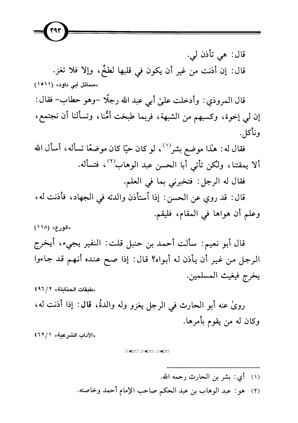 (¬2) هو: عبد الوهاب بن عبد الحكم صاحب الإمام أحمد وخاصته.