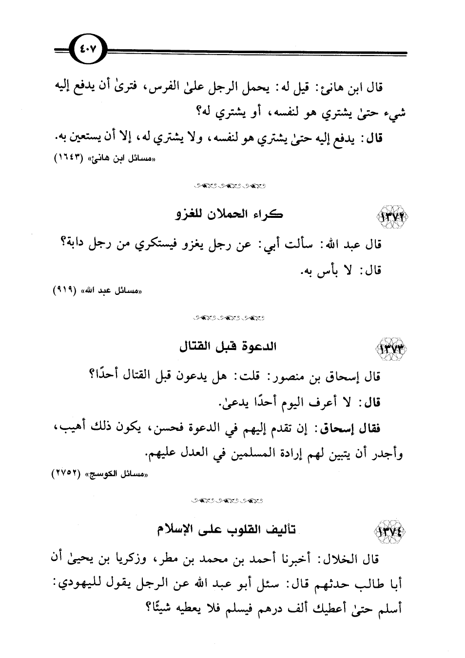 قال إسحاق بن منصور: قلت: هل يدعون قبل القتال أحدًا؟
