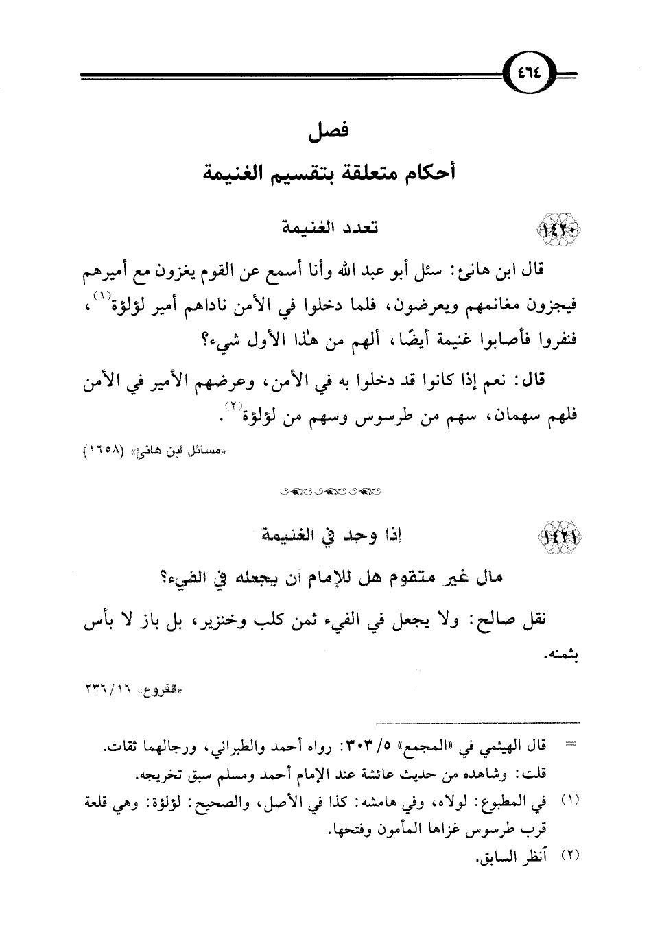 فصل أحكام متعلقة بتقسيم الغنيمة