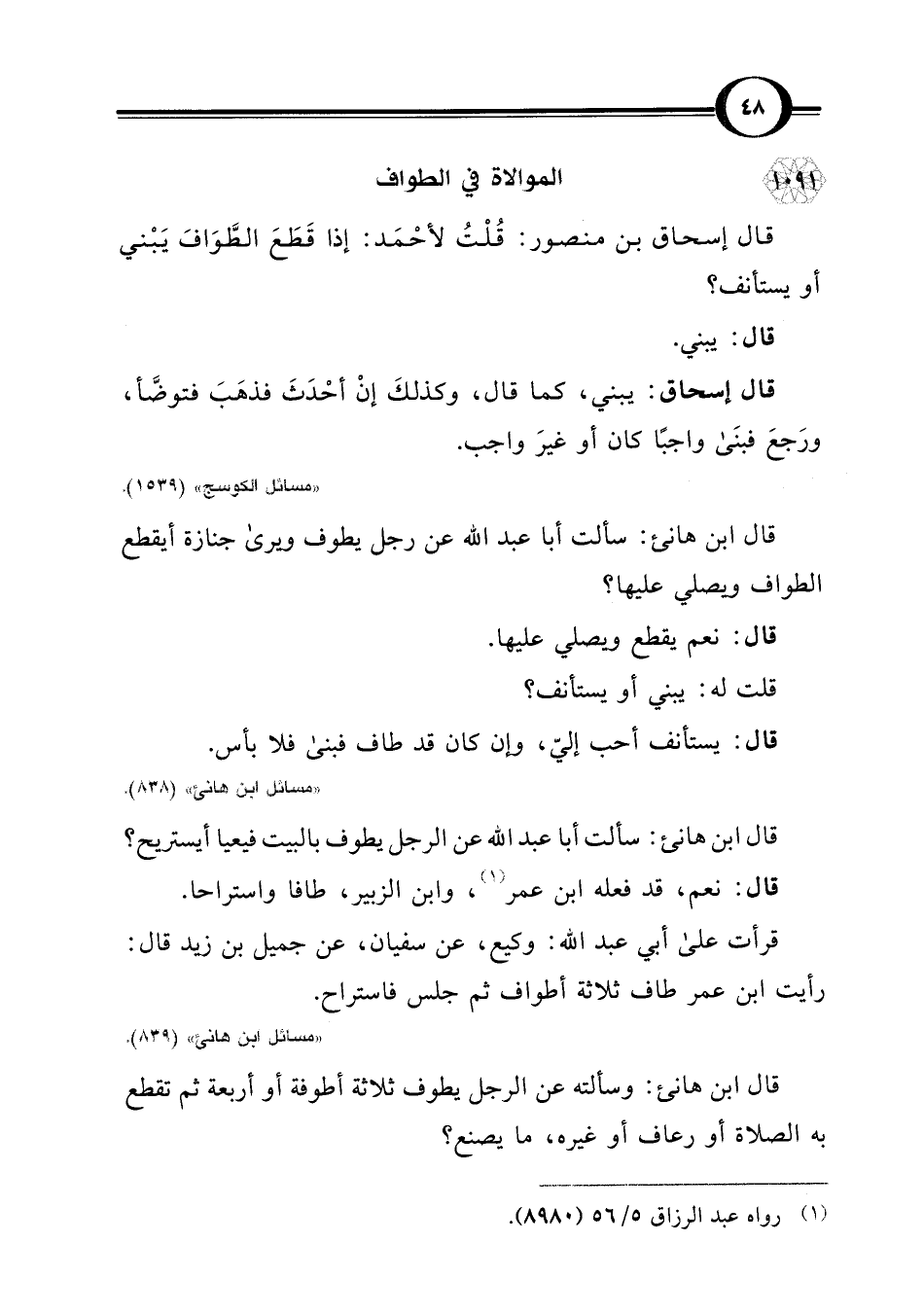 "مسائل ابن هانئ" (838).