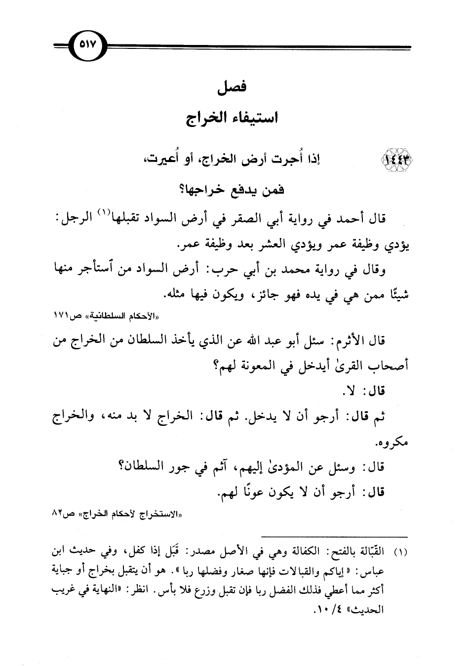 1443 - إذا أُجرت أرض الخراج، أو أُعيرت، فمن يدفع خراجها؟