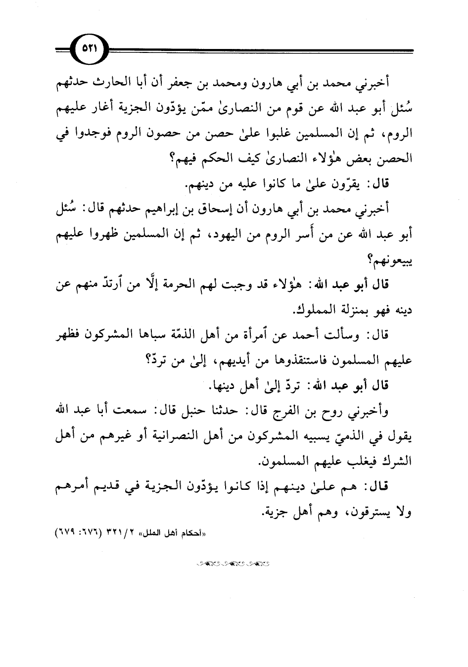 "أحكام أهل الملل" 2/ 321 (676: 679)