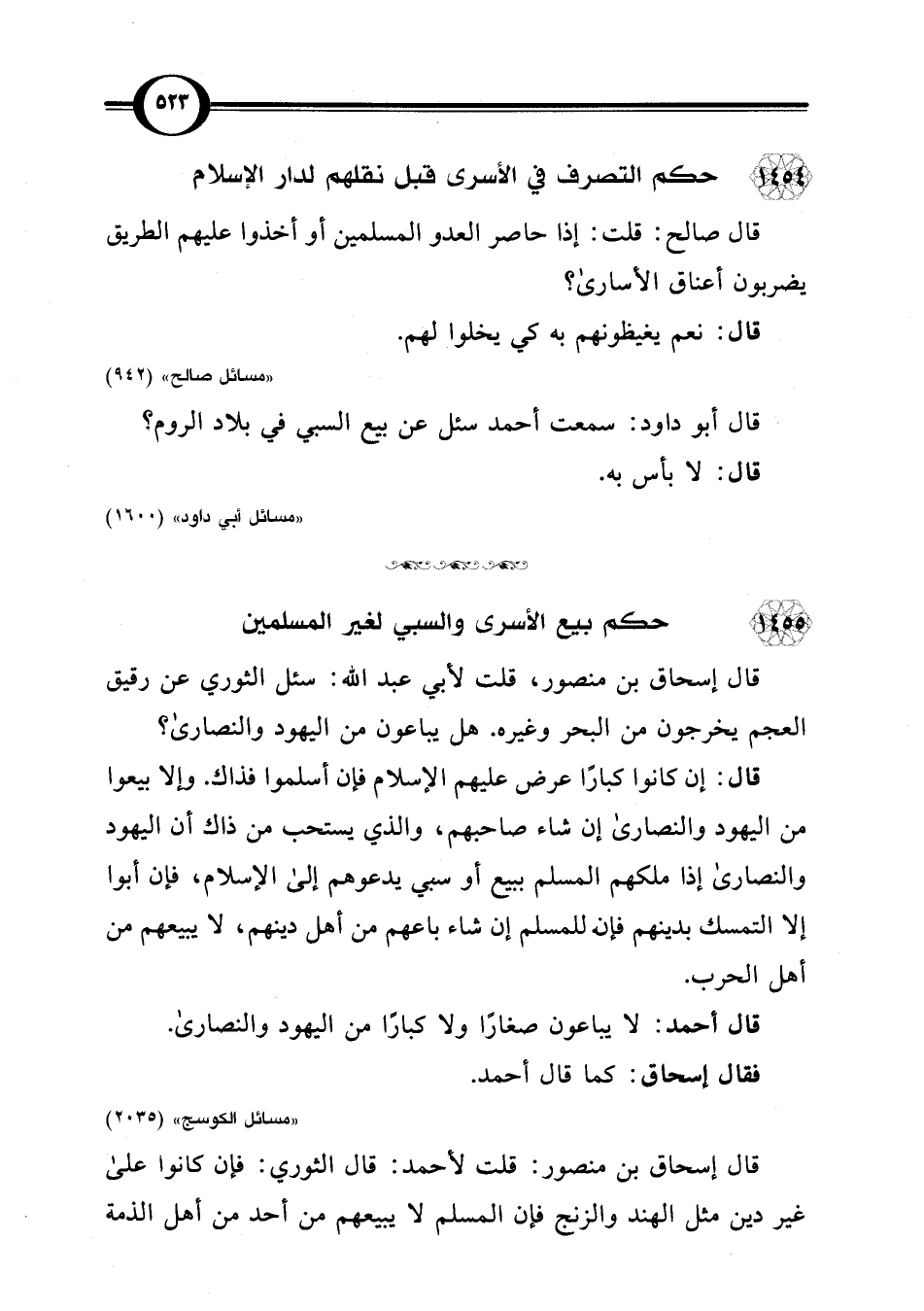 قال أبو داود: سمعت أحمد سئل عن بيع السبي في بلاد الروم؟