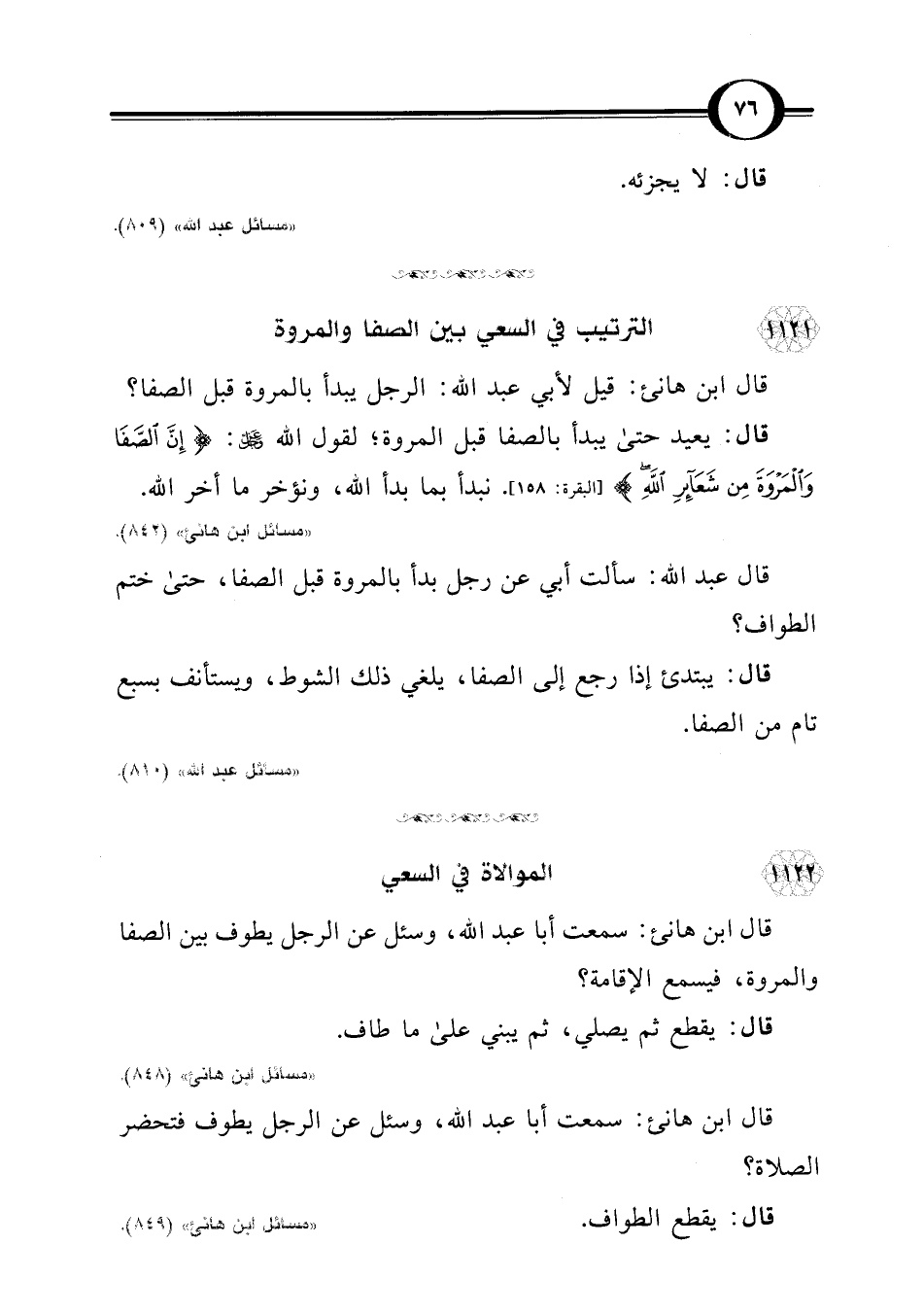 قال ابن هانئ: قيل لأبي عبد اللَّه: الرجل يبدأ بالمروة قبل الصفا؟
