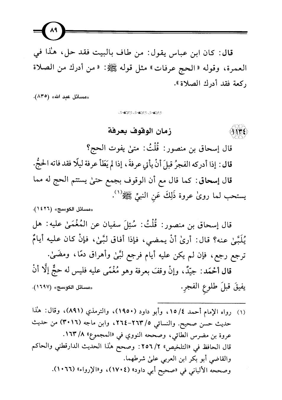 (¬1) رواه الإمام أحمد 4/ 15، وأبو داود (1950)، والترمذي (891)، وقال: هذا حديث حسن صحيح. والنسائي 5/ 263 - 264، وابن ماجه (3016) من حديث عروة بن مضرس الطائي، وصححه النووي في "المجموع" 8/ 163.
