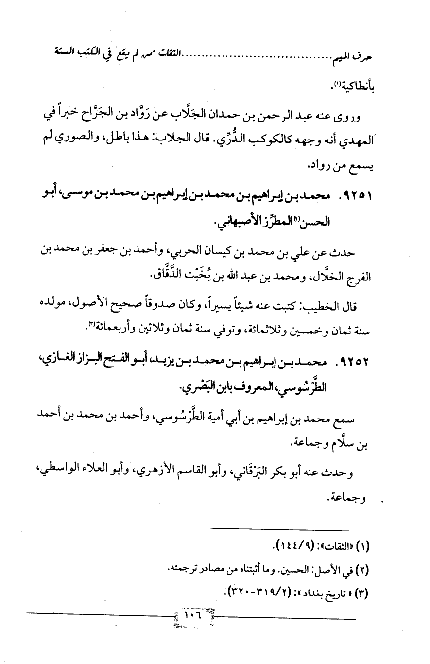 9251 - محمد بن إبراهيم بن محمد بن إبراهيم بن محمد بن موسى، أبو الحسن (¬2) المطرِّز الأصبهاني.