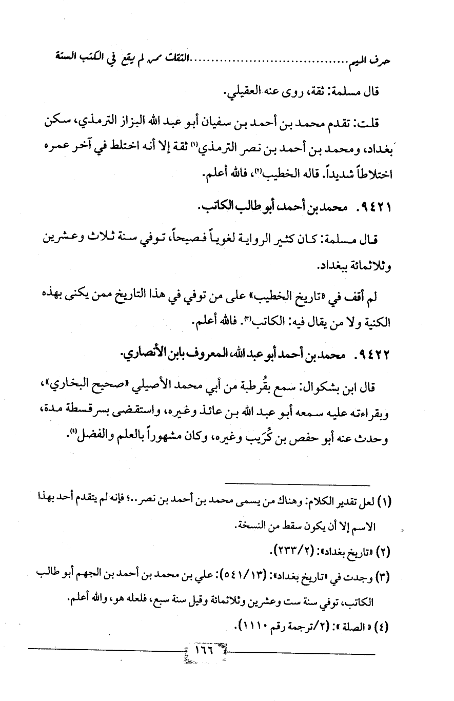 (¬1) لعل تقدير الكلام: وهناك من يسمى محمد بن أحمد بن نصر .. ؛ فإنه لم يتقدم أحد بهذا الاسم إلا أن يكون سقط من النسخة.