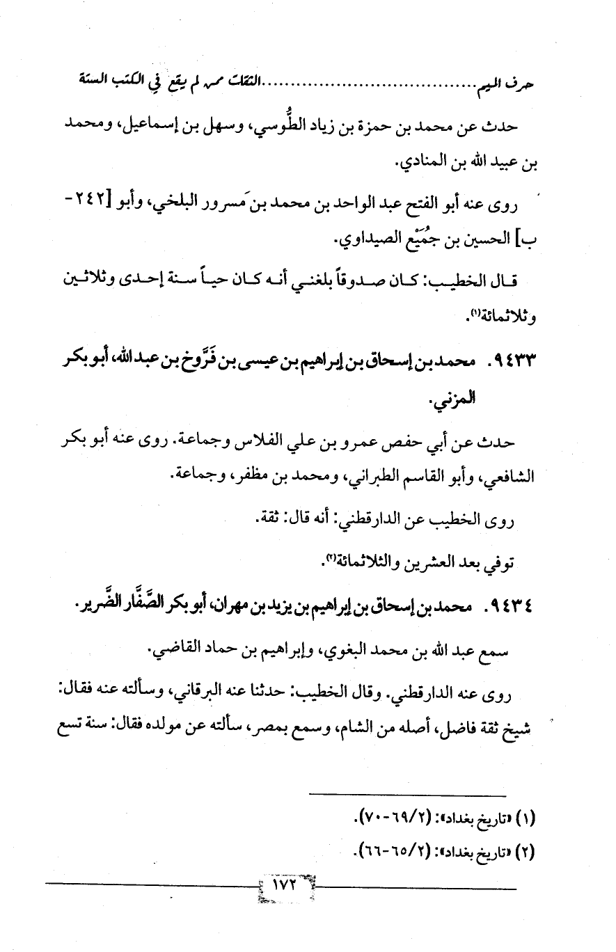 (¬1) «تاريخ بغداد»: (2/ 69 - 70).