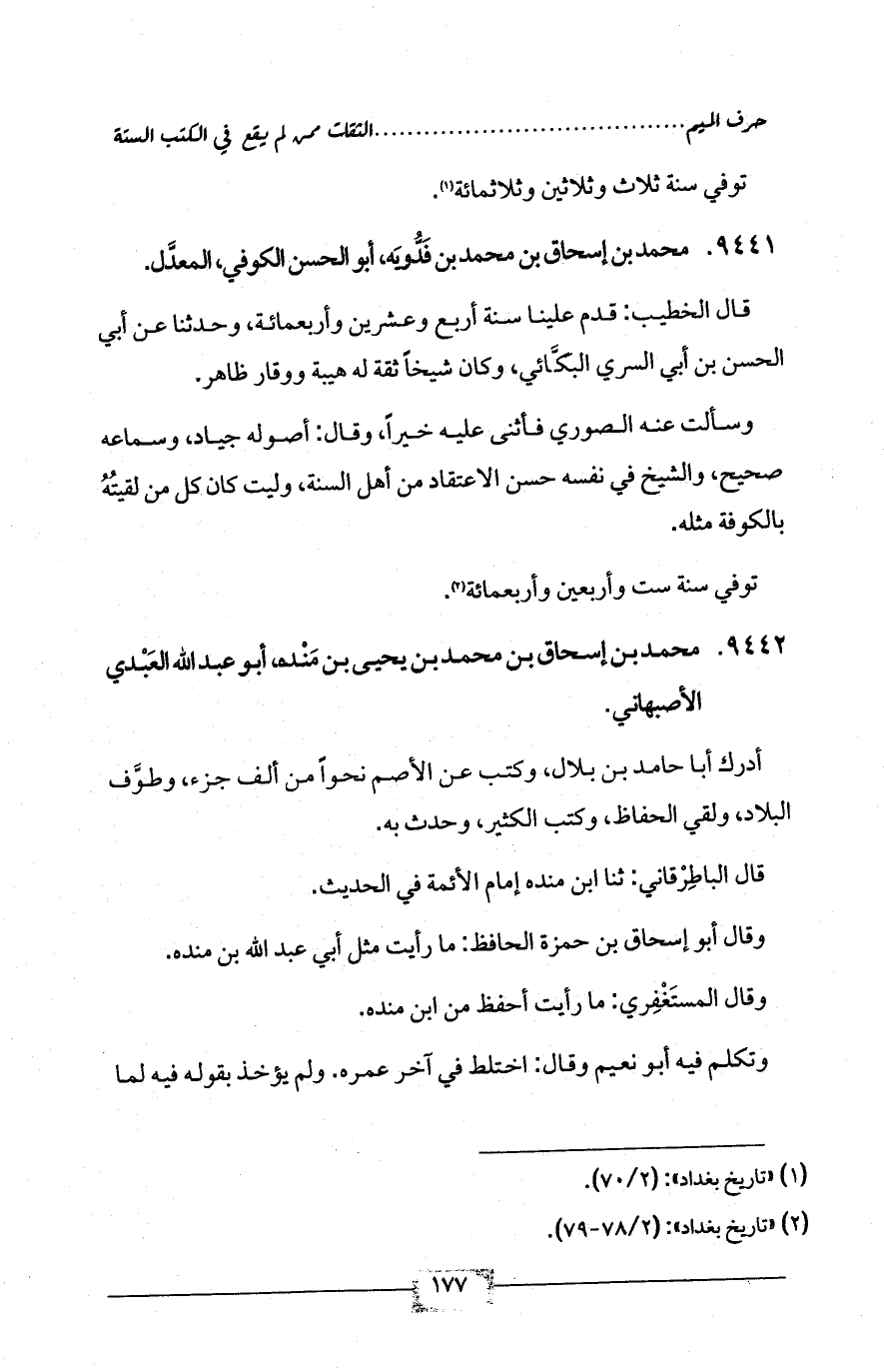9442 - محمد بن إسحاق بن محمد بن يحيى بن مَنْده، أبو عبد الله العَبْدي الأصبهاني.