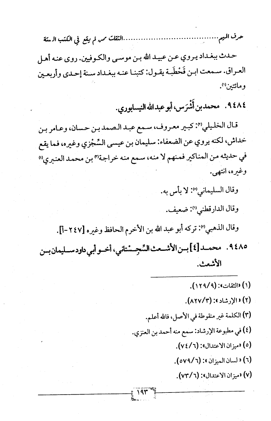 9485 - محمد [4] بن الأشعث السِّجِسْتاني، أخو أبي داود سليمان بن الأشعث.