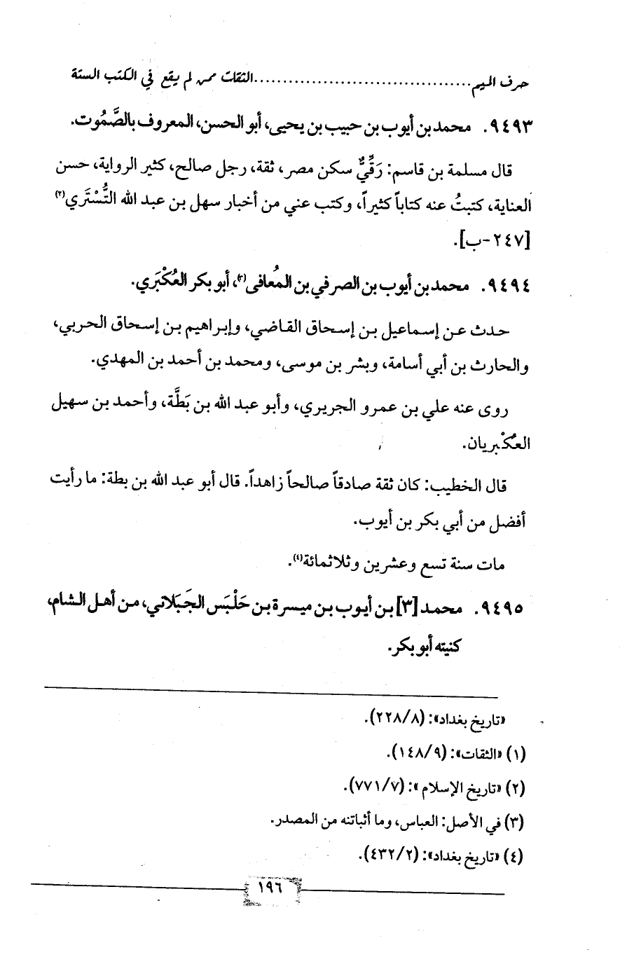 9495 - محمد [3] بن أيوب بن ميسرة بن حَلْبَس الجَبَلاني، من أهل الشام، كنيته أبو بكر.
