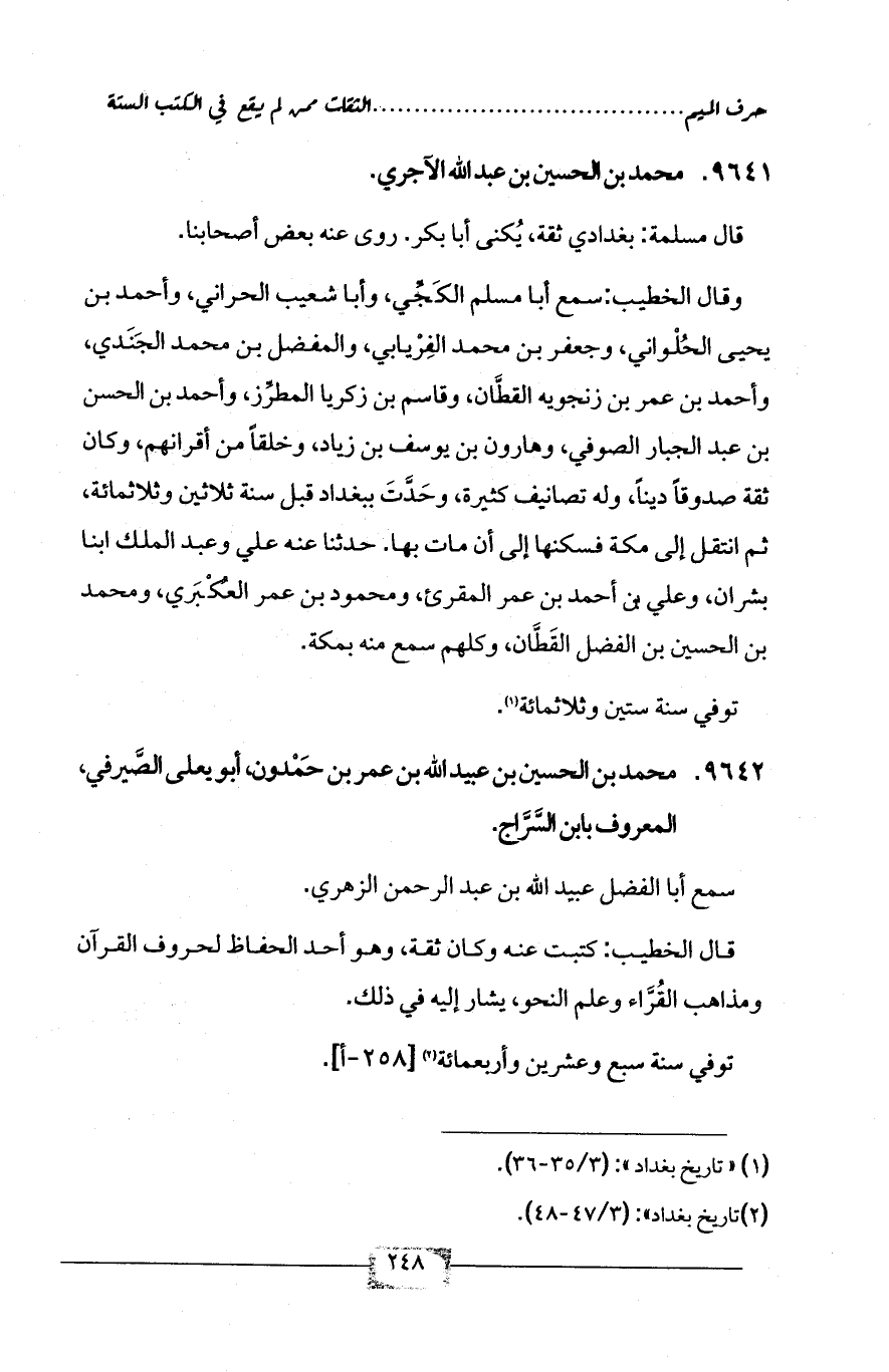 (¬2) تاريخ بغداد»: (3/ 47 - 48).