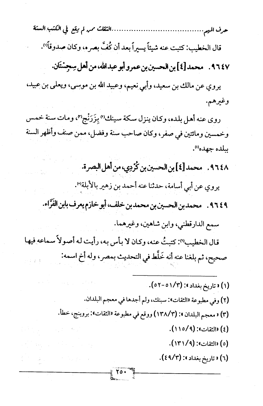 9647 - محمد [4] بن الحسين بن عمرو أبو عبد الله، من أهل سِجِسْتَان.