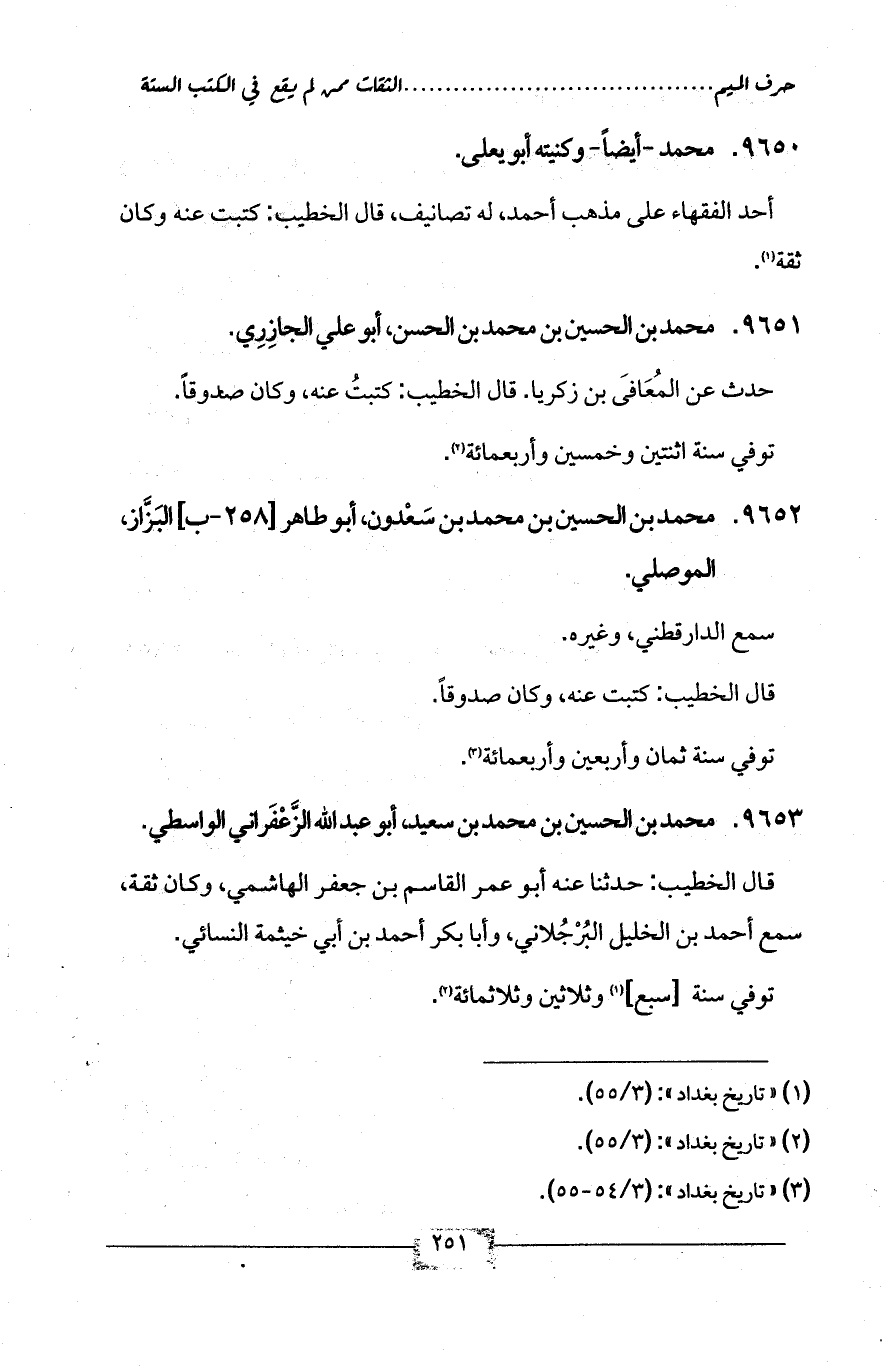 (¬3) «تاريخ بغداد»: (3/ 54 - 55).