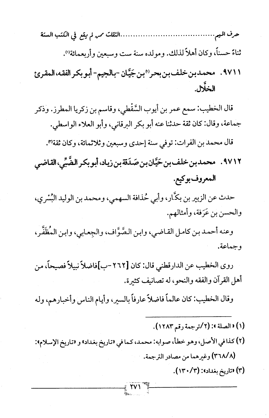 9711 - محمد بن خلف بن بحر (¬2) بن جَيَّان -بالجيم- أبو بكر الفقه، المقرئ الخلَّال.