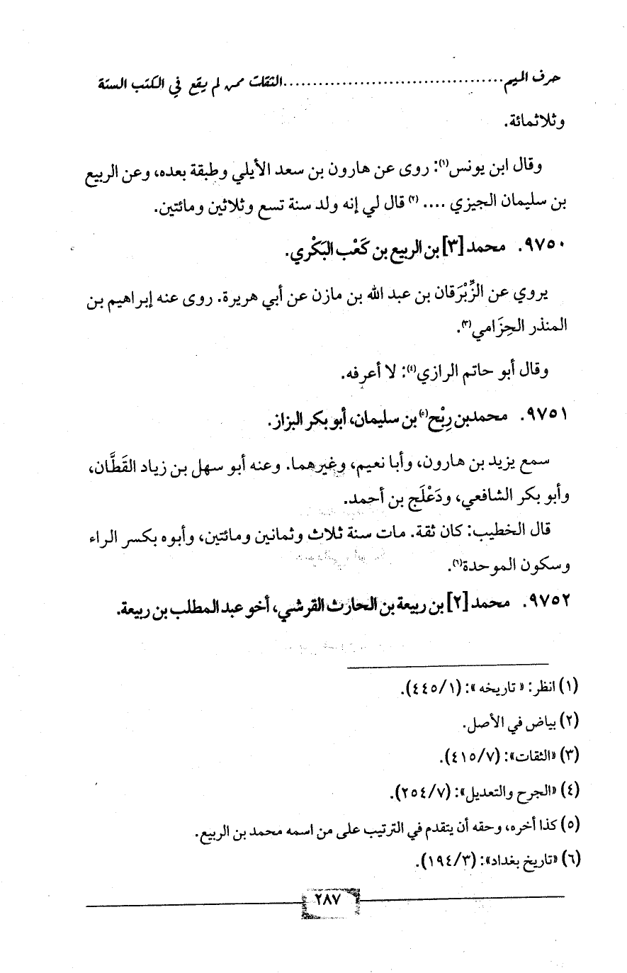 (¬5) كذا أخره، وحقه أن يتقدم في الترتيب على من اسمه محمد بن الربيع.