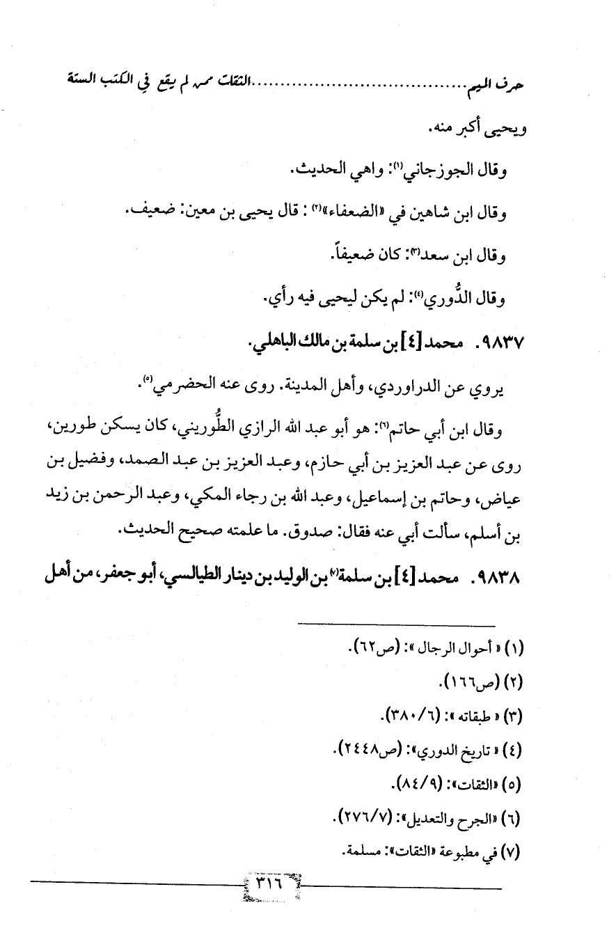 (¬6) «الجرح والتعديل»: (7/ 276).
