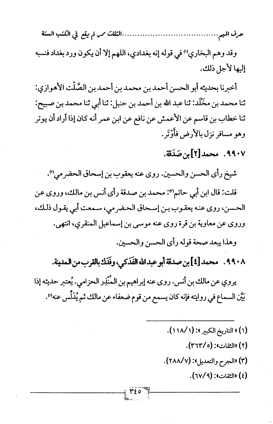 9908 - محمد [4] بن صدقة أبو عبد الله الفَدَكي، وفَدَك بالقرب من المدينة.
