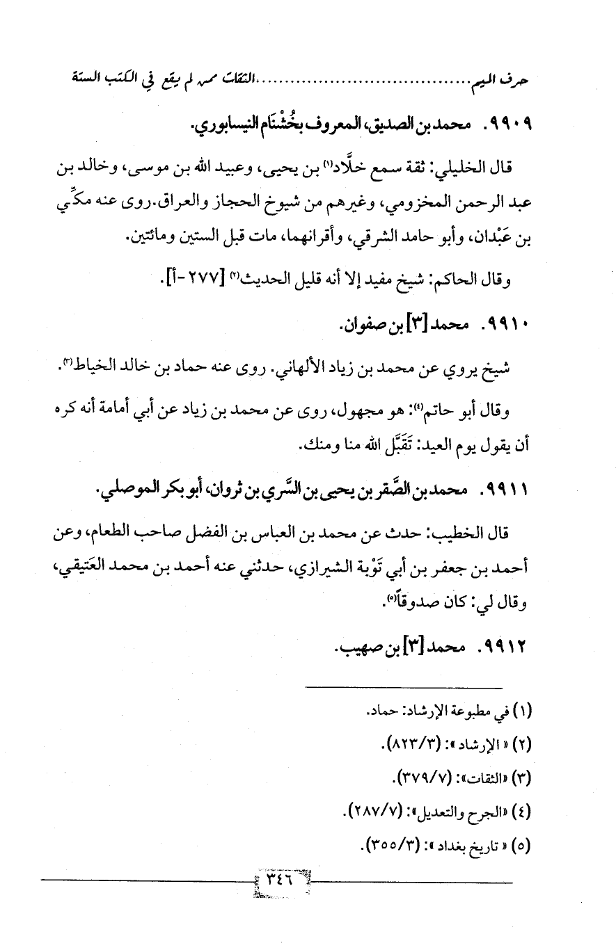 9909 - محمد بن الصديق، المعروف بخُشْنَام النيسابوري.
