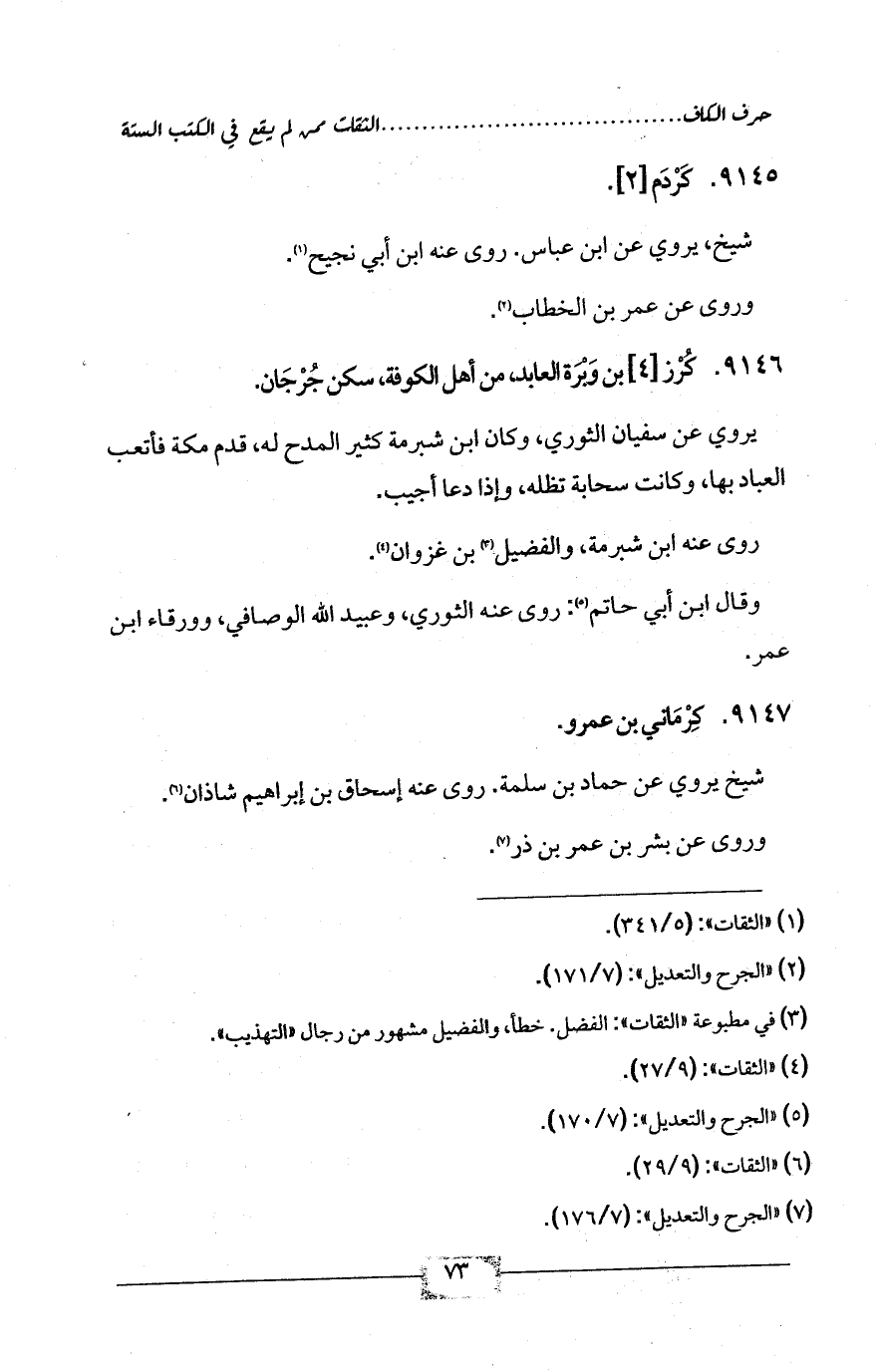 9146 - كُرْز [4] بن وَبْرَة العابد، من أهل الكوفة، سكن جُرْجَان.