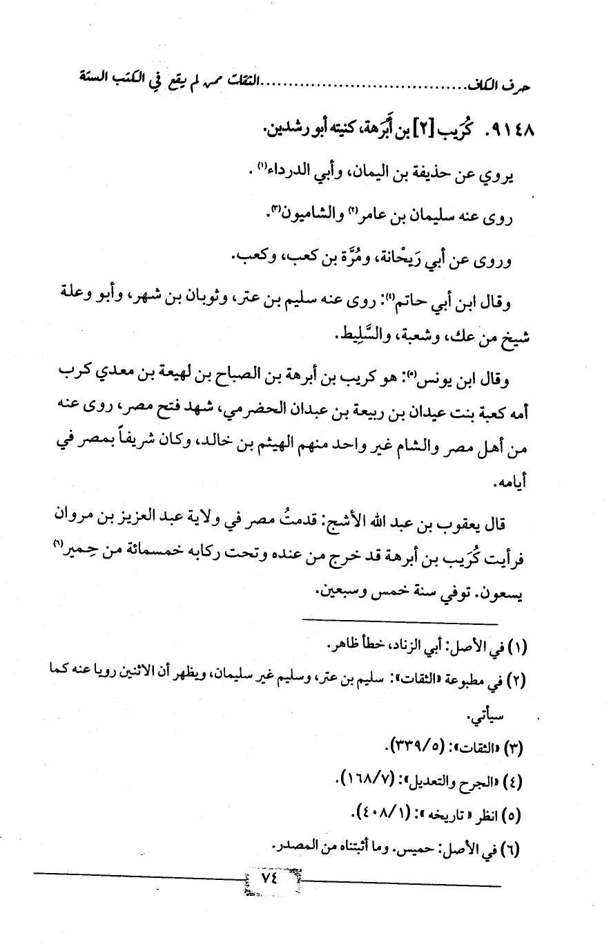 قال يعقوب بن عبد الله الأشج: قدمتُ مصر في ولاية عبد العزيز بن مروان فرأيت كُرَيب بن أبرهة قد خرج من عنده وتحت ركابه خمسمائة من حِمير (¬6) يسعون. توفي سنة خمس وسبعين.