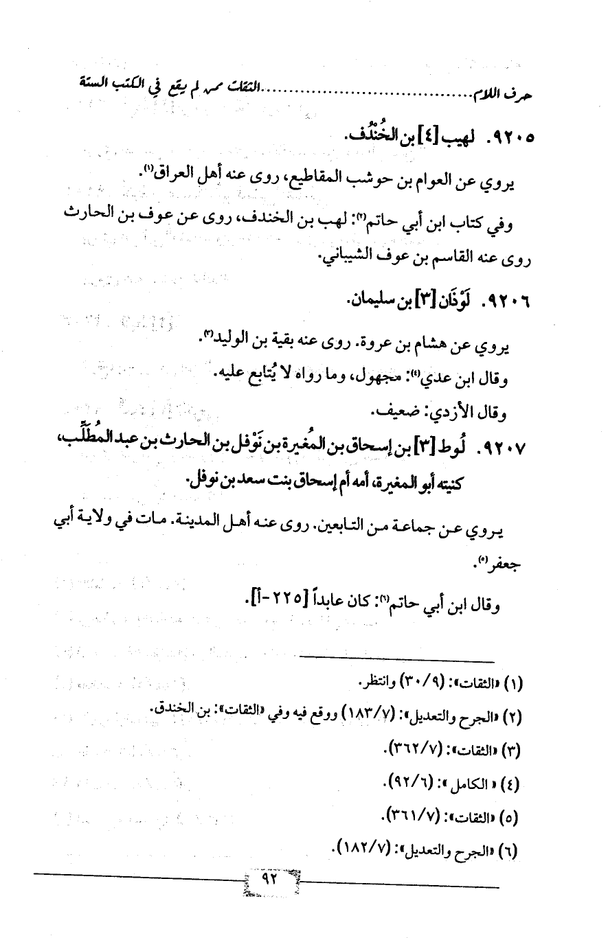 (¬6) «الجرح والتعديل»: (7/ 182).