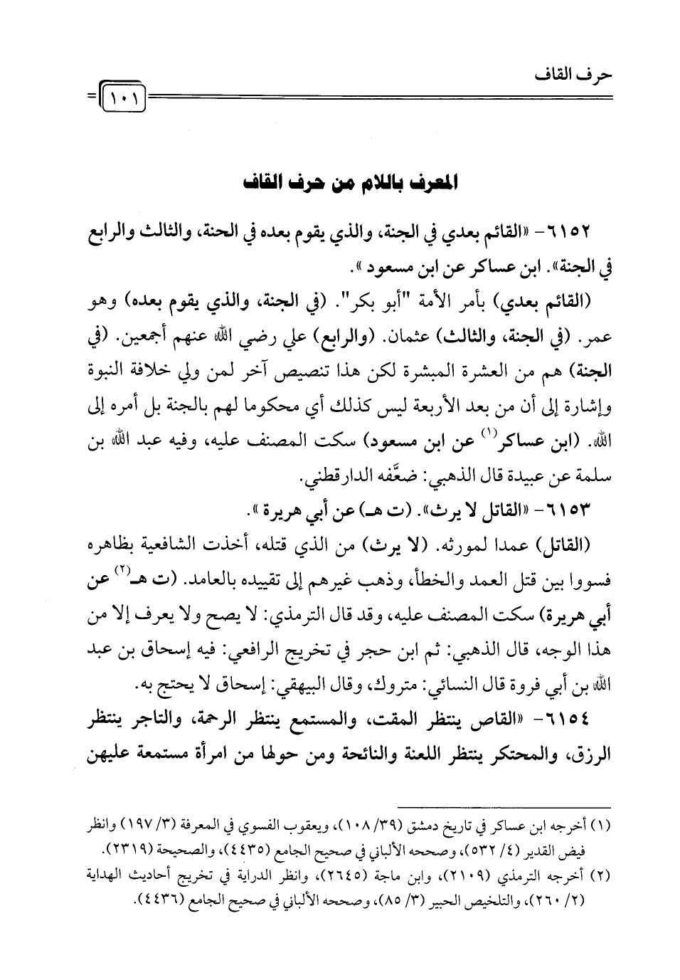 6153 - "القاتل لا يرث". (ت هـ) عن أبي هريرة".