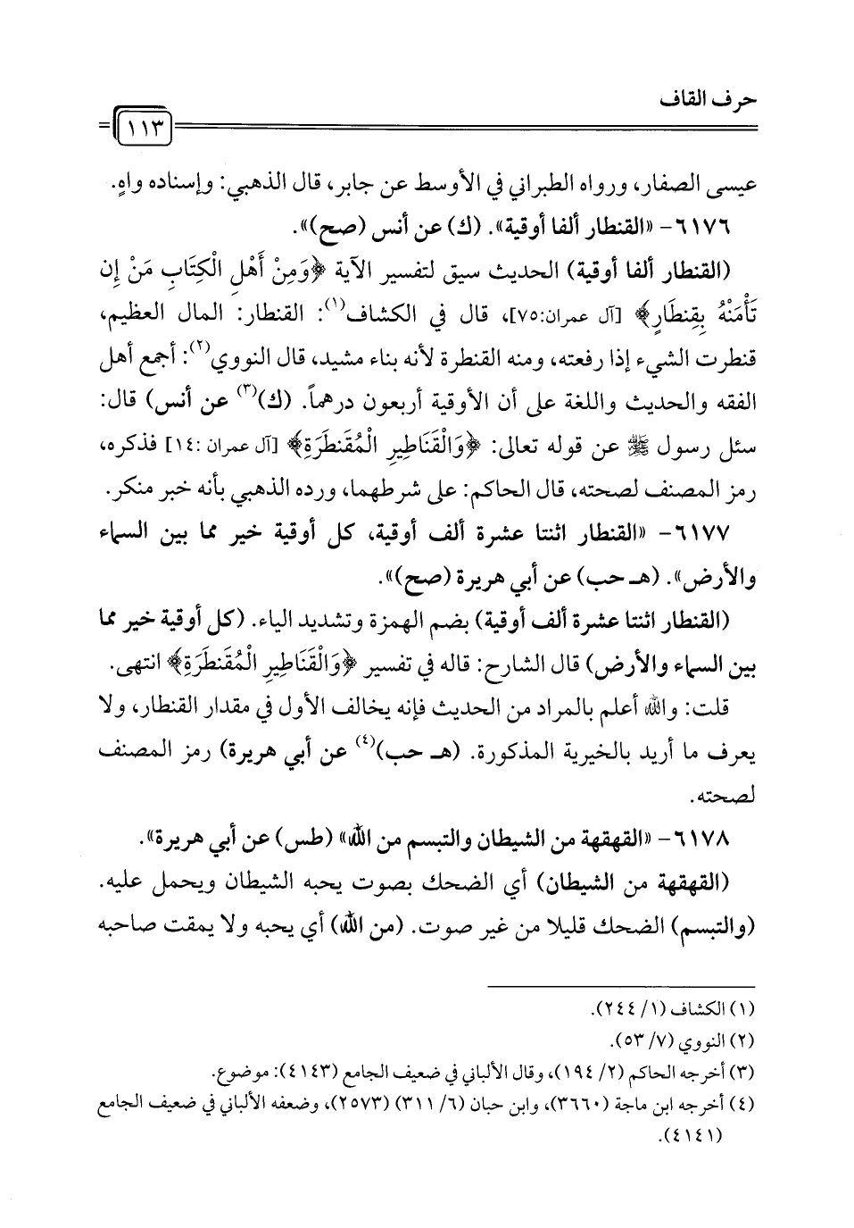 6176 - "القنطار ألفا أوقية". (ك) عن أنس (صح) ".