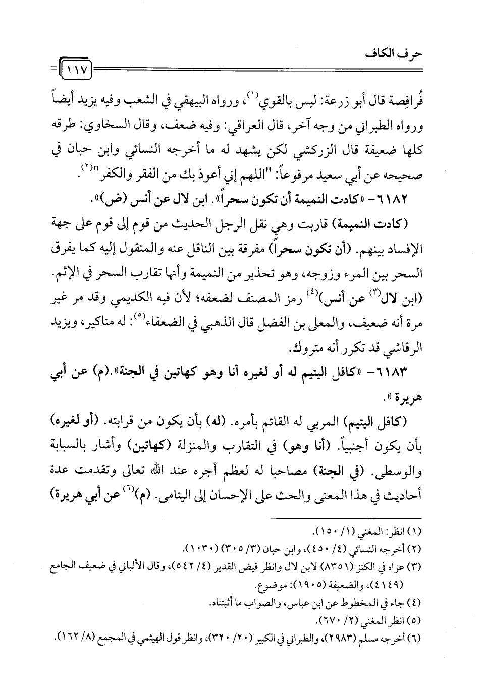 6183 - "كافل اليتيم له أو لغيره أنا وهو كهاتين في الجنة". (م) عن أبي هريرة".