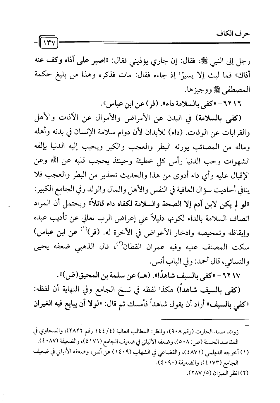 6216 - "كفى بالسلامة داء". (فر) عن ابن عباس".