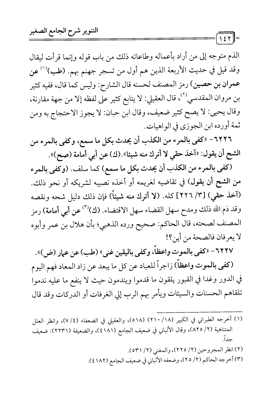 6226 - "كفى بالمرء من الكذب أن يحدث بكل ما سمع، وكفى بالمرء من الشح أن يقول: "آخذ حقي لا أترك منه شيئاً". (ك) عن أبي أمامة (صح) ".