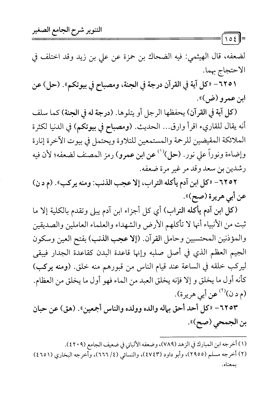 6252 - "كل ابن آدم يأكله التراب، إلا عجب الذنب: ومنه يركب". (م د ن) عن أبي هريرة (صح) ".