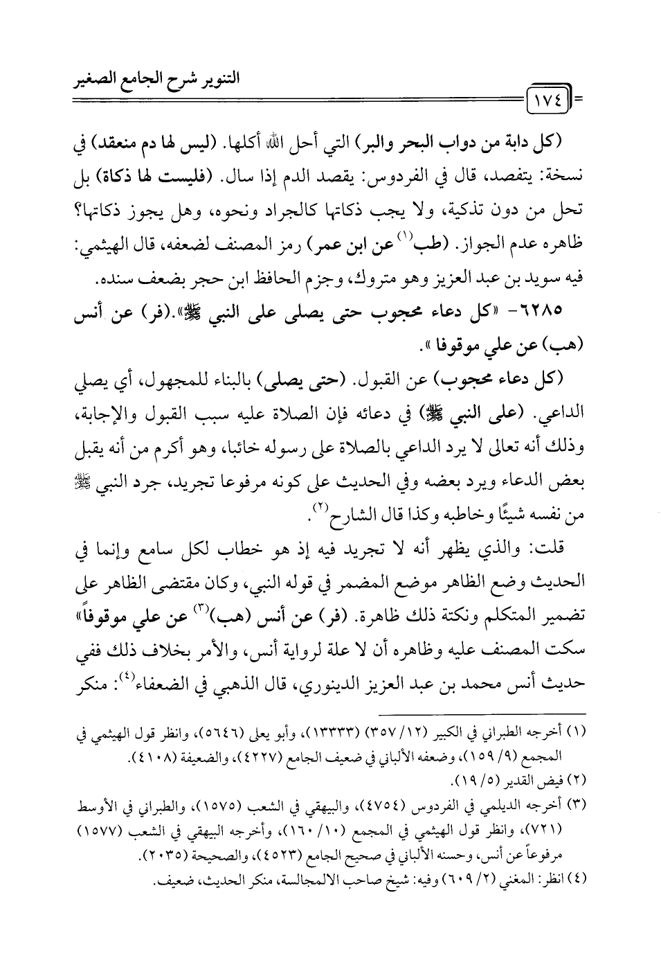 6285 - "كل دعاء محجوب حتى يصلى على النبي - صلى الله عليه وسلم -". (فر) عن أنس (هب) عن علي موقوفاً".