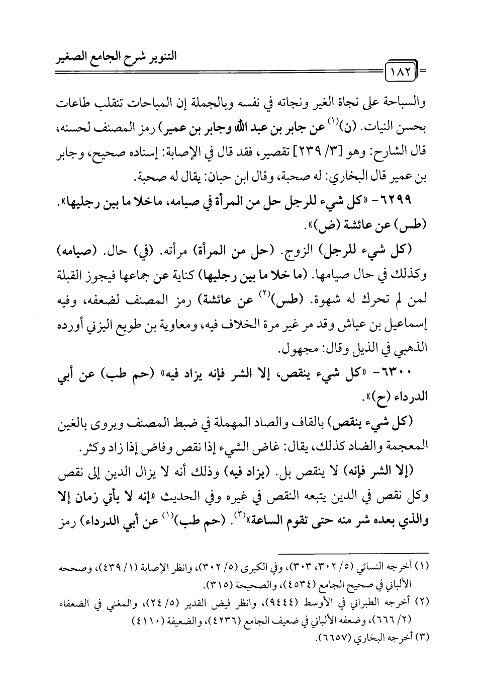 6299 - "كل شيء للرجل حل من المرأة في صيامه، ما خلا ما بين رجليها". (طس) عن عائشة (ض) ".