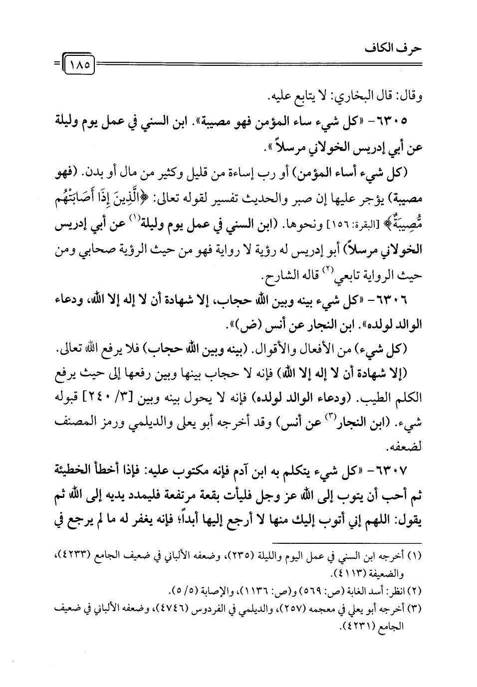 6305 - "كل شيء ساء المؤمن فهو مصيبة". ابن السني في عمل يوم وليلة عن أبي إدريس الخولاني مرسلاً".