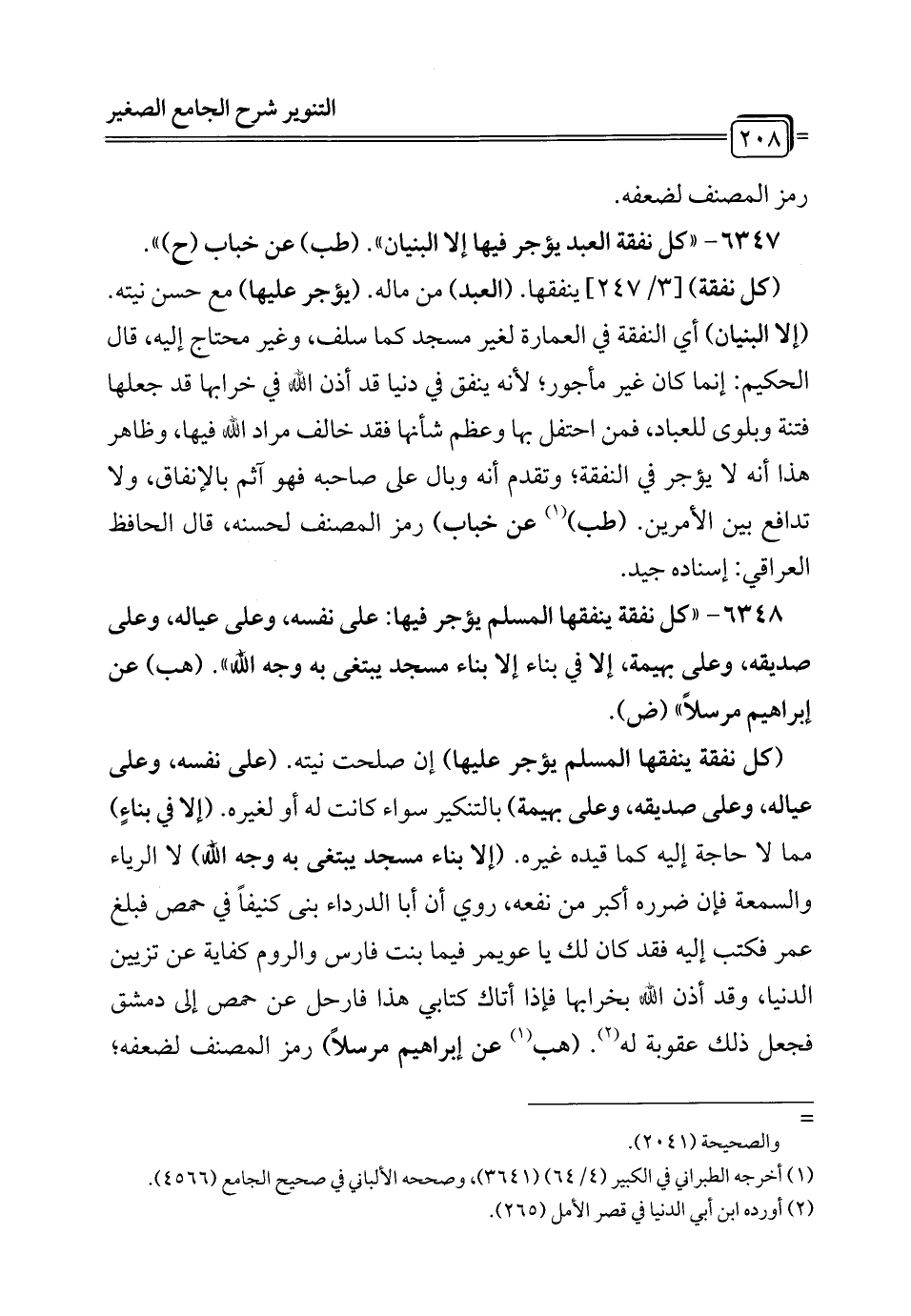 6348 - "كل نفقة ينفقها المسلم يؤجر فيها: على نفسه، وعلى عياله، وعلى صديقه, وعلى بهيمة, إلا في بناء إلا بناء مسجد يبتغى به وجه الله". (هب) عن إبراهيم مرسلاً" (ض).
