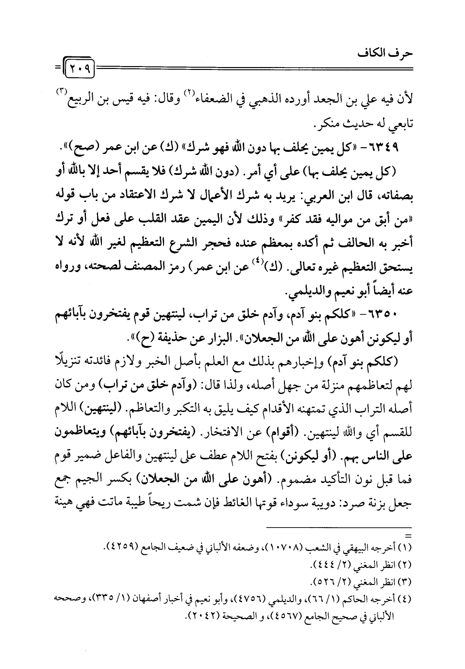 6349 - "كل يمين يحلف بها دون الله فهو شرك" (ك) عن ابن عمر (صح) ".
